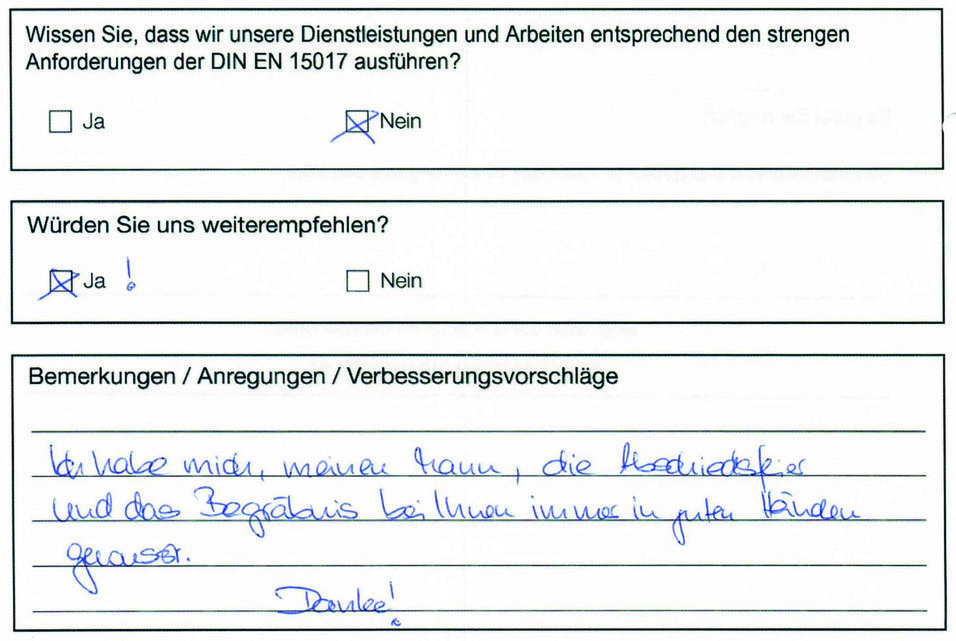 Unsere Arbeit ist unsere Berufung, denn hinter jedem Sterbefall steckt ein gelebtes Leben.